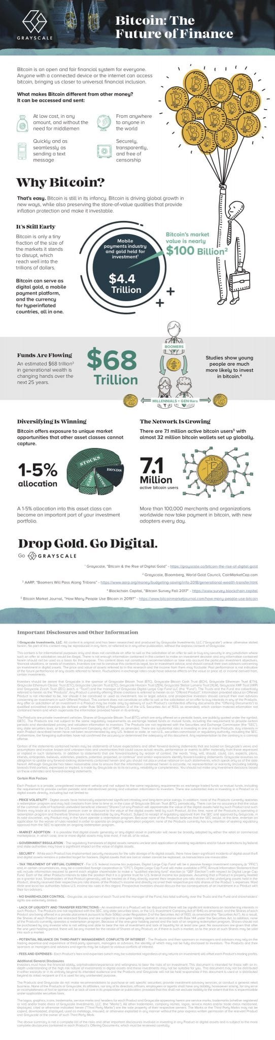 Grayscale, which has $2.6 billion in assets under management, also released an infographic that names Bitcoin as the emerging future of finance.