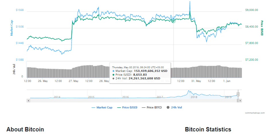 At the moment, BTC is trading in the green on CoinMarketCap, just like all essential coins in the market, and BTC is priced at $8,545.24.
