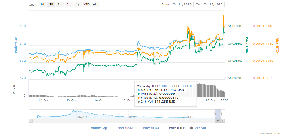 ELEC is trading in the green, and it’s priced at $0.009907 and up by more than 8% as you can see in the chart below.