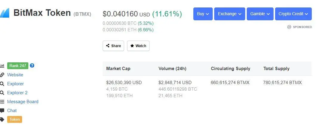 Thirdly, the demand created from traders holding more BTMX will surely increase the value of the token as can be seen right now on Coinmarketcap.com. BTMX is currently trading at $0.04 and up 11.61% in 24 hours.