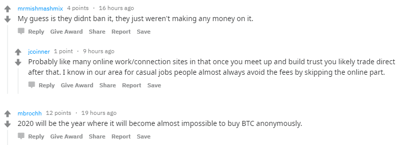 People are disappointed and the comments in the thread on Reddit say it all. Someone posted, “It’s time to no longer recommend localbitcoins, EVER.”