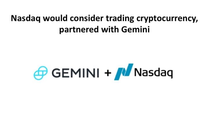 It was reported by some more reliable sources that Gemini and Nasdaq are moving closer to a joint venture that allows both of them to list tokens and provide liquidity on a global scale.