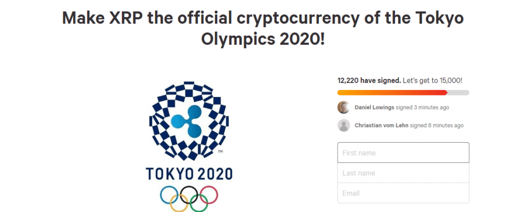Ken Takahashi is the crypto enthusiast who started a petition more than ten months ago on Change.org to make Ripple’s digital asset XRP the official crypto of the 2020 Tokyo Olympic Games. Now, the petition gains popularity on a daily basis.
